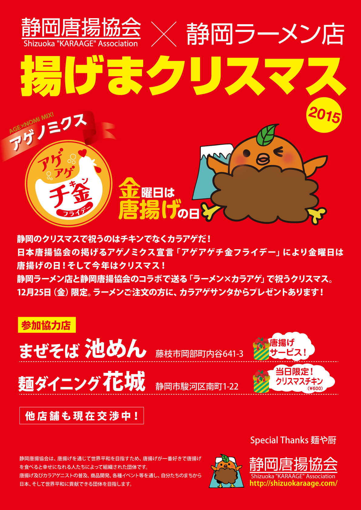静岡ラーメン店と静岡唐揚協会のコラボで送る「ラーメン×カラアゲ」で祝うクリスマス。