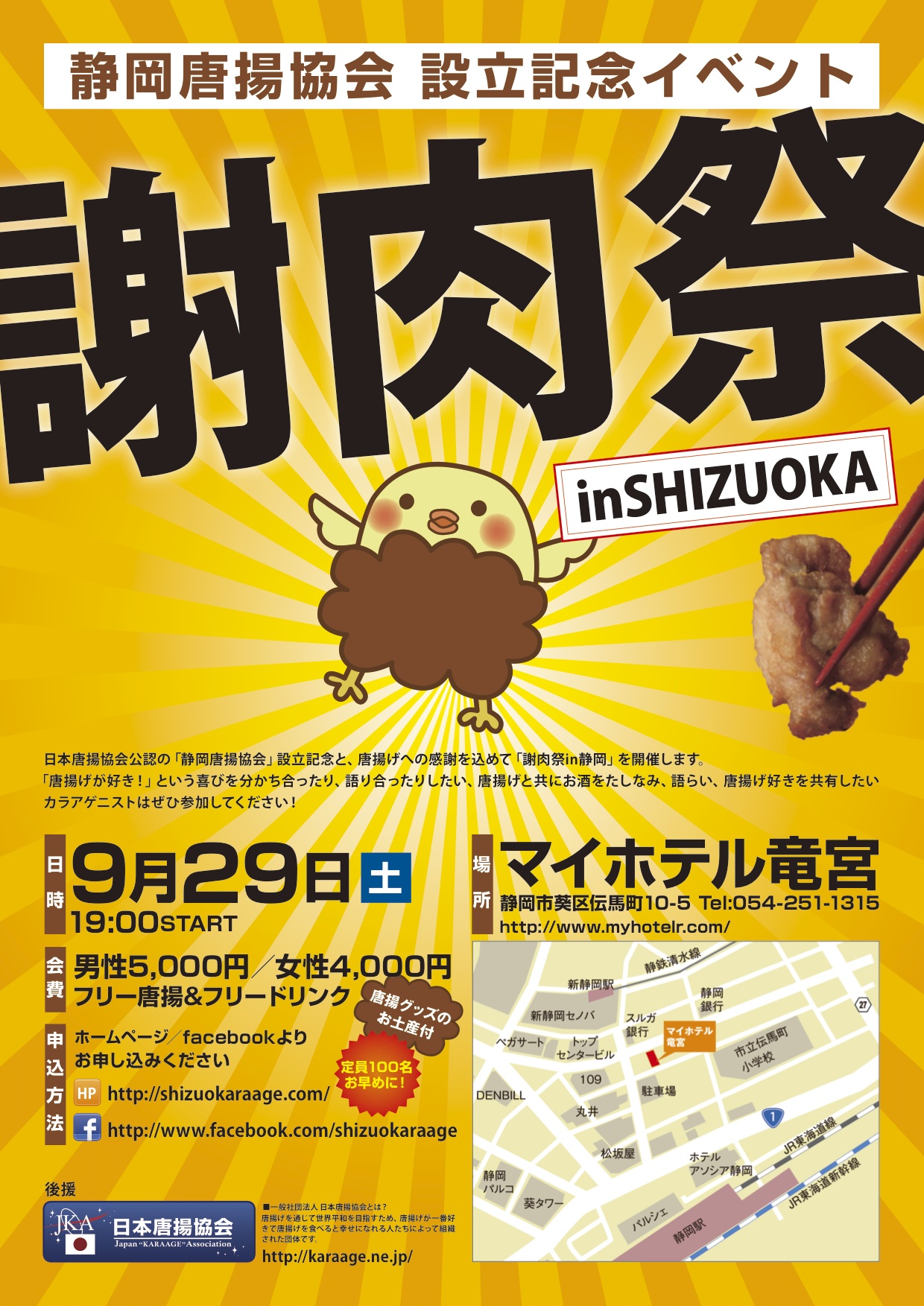 突然ですが、勝手に静岡唐揚協会立ち上げました。県単位としては世界初?の団体です!・・・多分(笑)。その設立記念と、日頃から僕らを幸せにしてくれているカラアゲに感謝して『謝肉祭 in SHIZUOKA』を開催する運びとなりました。